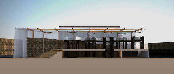 Upon entering the scheme you immediately come upon the lecture space, emphasising the important role education takes within the society. When live lectures are not in progress recorded lectures such as TED Talks (released under Creative Commons license) will be projected as a centre for discussion and inspiration.