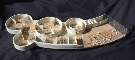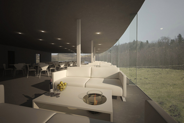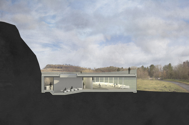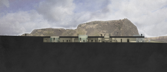The scheme responds directly to the site, burrowing the hostel into the cragside contrasted with an expansive glazed wall providing dramatic views from the cafe/lounge. The two approaches reveal the scheme in different manners.